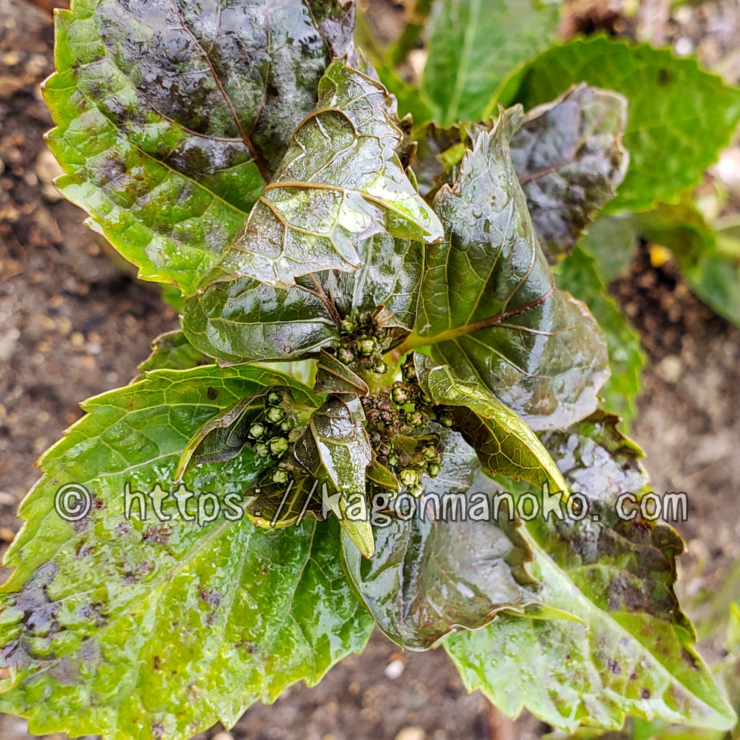 ※地植え前の生育環境が地植え後の環境と異なる場合は、紫陽花の苦手な環境ではない時に植えると、植付後の環境に順応し適用することで枯れずに済む。 - 蕾はなく葉だけある紫陽花の場合