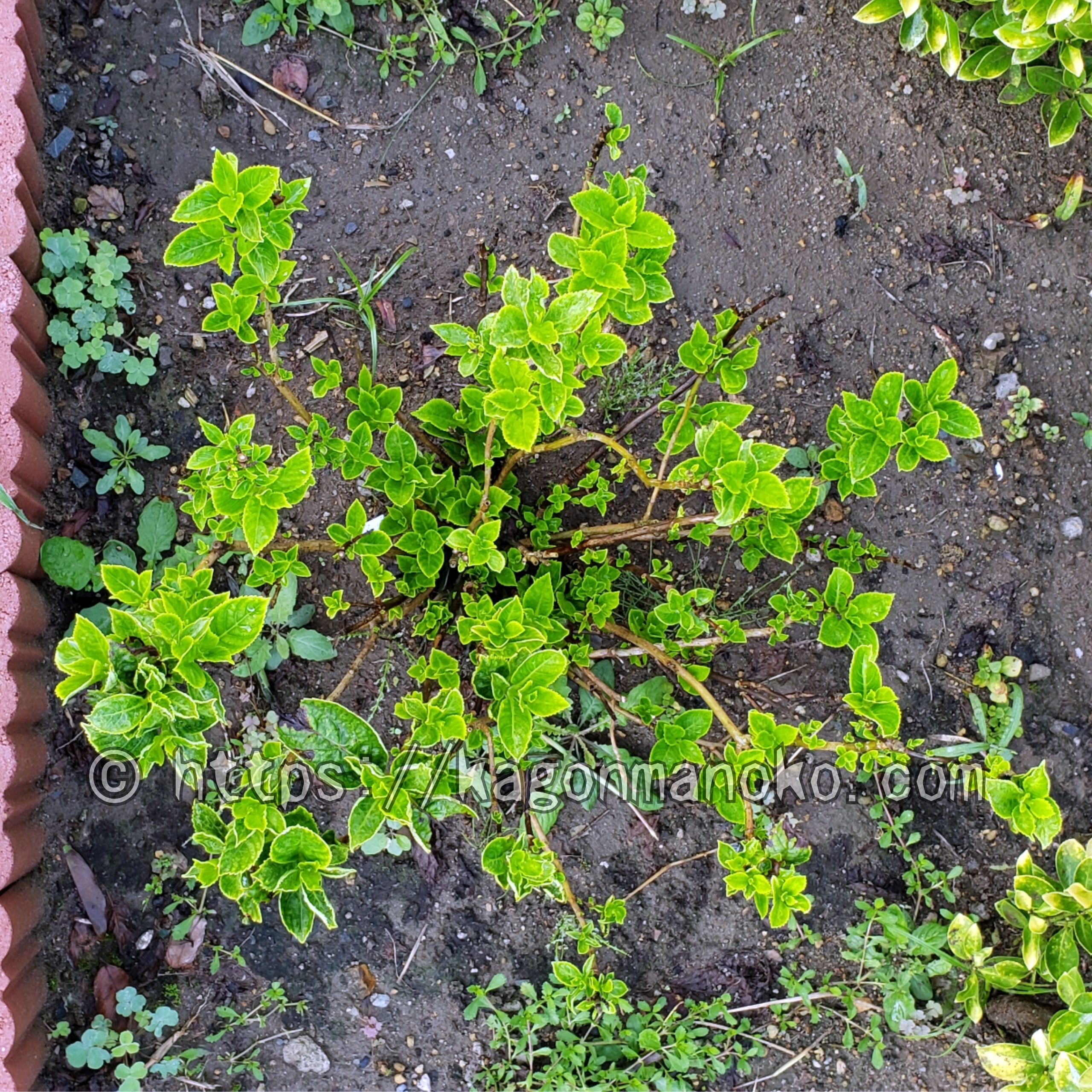 炭疽病をこれ以上広げないために「GFベンレート水和剤」を散布してから7日目。早くも新しい新芽が出てきました。秋で紫陽花も過ごしやすい気候になり相乗効果で若芽が伸びています。