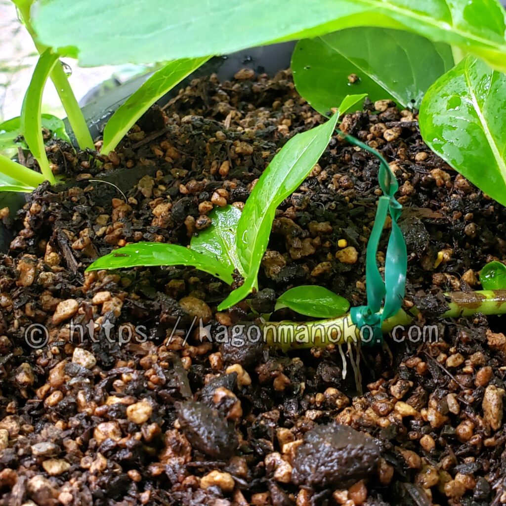 親株の茎を土の表面まで曲げるため、長く曲げやすい茎を選びましょう。