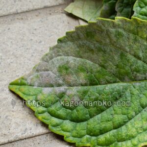 それでは、紫陽花がうどんこ病に感染した葉の症状を写真で解説します。