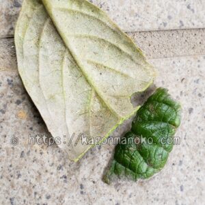 - 葉が乾燥していてパッキと割れた