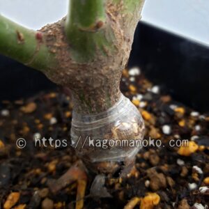 大苗は接木により新しい苗を増やしています。接木で使っている土台の影響も受けますが、根元が太い大苗を選ぶようにします。太い分、元気で健全に育っている証拠。ただし、根元が細く太くないからと言ってダメな苗ではありません。大苗が成長して1~3年ほど経過すると、購入した大苗の根元より3~4倍ほどの大きさに成長します。