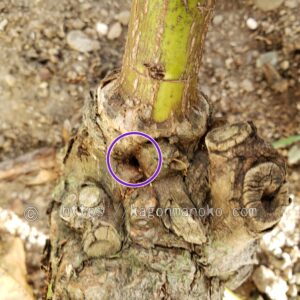 ということで、テッポウムシの食害にあってもキズついた幹はいつまでも穴があいているわけではなくもとの幹に戻ろうとすることが分かりました。これで、枯れることなく冬を乗り越えられそうです