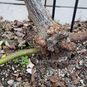 食害で穴があいて空洞になっていた幹は自ら修復をしようとボコボコしていました。ちょっと気持ち悪いほどです(>_<)。キズができた幹をもとに戻そうと細胞が増殖しているように感じます。薔薇の回復力はすごいですね。