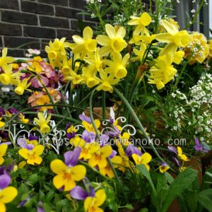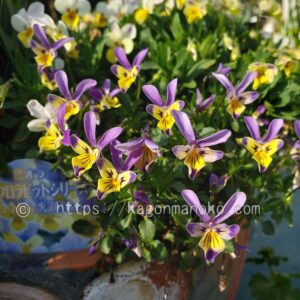 この時期になるとビオラが満開を迎えていて花の切り戻しをしても1週間ほどで花が立ち上がってくるので寄せ植えもしやすく、それぞれの花の見ごたえ時期も調整しやすいですね。