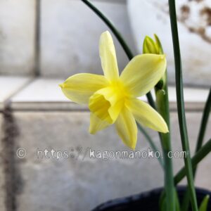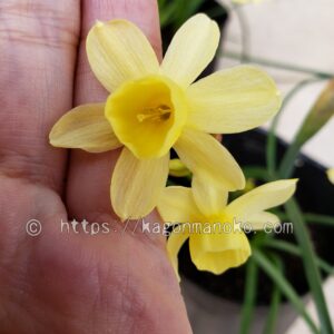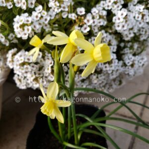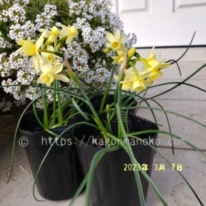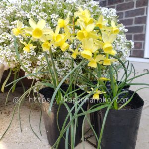 我が家では、日本水仙、ペーパーホワイトに続き3番目に早い開花となっています。エンジェルウィスパーの花が中盤を迎える頃にテテブークルが咲き始めました。地域の野原や田んぼのあぜ道では昔ながらのラッパ水仙が見事に開花いていますし、地域の花壇ではシルバーチャームが咲き誇っていますよ。
