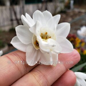 ペーパーホワイトの香りはかなり独特すぎて強い香りと表現される方だと思います。苦手な方が多いかもしれません。房咲きにより1本でも5~6本の花をつけているため、香りが5倍、6倍と強く感じられます。お外で育てていても風がない日は水仙の横を歩くだけで香りが漂ってきますので、切り花にして室内で飾るときは正直、匂いの好き嫌いによってペーパーホワイトの香りを苦手と感じる方もいらっしゃるかもしれません。香りと書かずに、匂いと書いていることに注意ですね(*‘∀‘)フフ