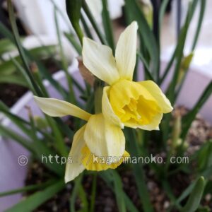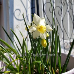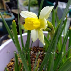 園芸水仙が咲き始める3月中旬ごろ、鉢に植えていた水仙が控えめに咲きながら存在をPRしていました。その品種は「セイルボート」というミニ水仙でした。ラッパ咲きで少しうつむきながら咲いていますが、主張しすぎない花色、花の大きさで、伸びすぎない葉丈が特徴だと思います。