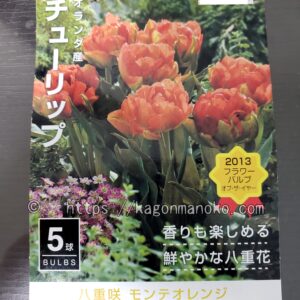 育てて感じた「太陽のような輝きが魅力的なオレンジ色の八重咲きチューリップ」であるモンテオレンジをご紹介します。薄い黄緑色の蕾が開花すると深いオレンジ色へ変化します。黄色の絞りが入っている花弁は一枚一枚がとても美しい。モンテオレンジは、チューリップの魅力を十分に味わうことができる品種です。